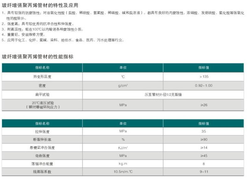 frpp管用經(jīng)偶聯(lián)劑處理的玻璃纖維改性聚丙烯材料生產(chǎn),依據(jù)HG20539-92標(biāo)準(zhǔn),規(guī)格DN15-DN1500mm,公稱壓力0.4-1.0MPa,耐腐蝕、耐高溫、耐高壓、衛(wèi)生無毒,可回收利用,適用于腐蝕性液體輸送(如酸堿液)及市政給排水系統(tǒng)。具有較優(yōu)良的抗沖擊性和拉伸強度,重量輕,安裝維修方便,frpp管現(xiàn)有熱風(fēng)焊連接、熱熔連接以及法蘭連接方式,被廣泛應(yīng)用于化工、冶金、印染、市政工程、化纖、氯堿、給排水、食品、污水處理等行業(yè)。