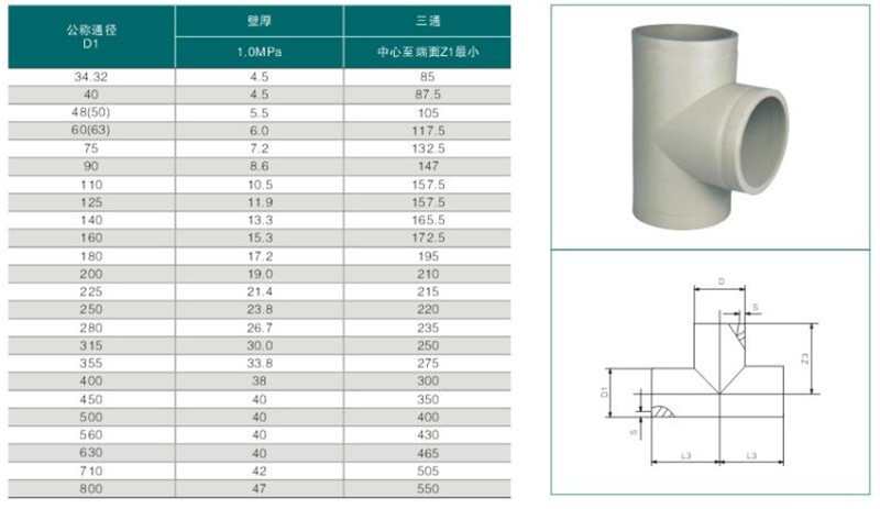 4、按照連接方式分有對(duì)焊三通、承插三通,熱熔承插三通。